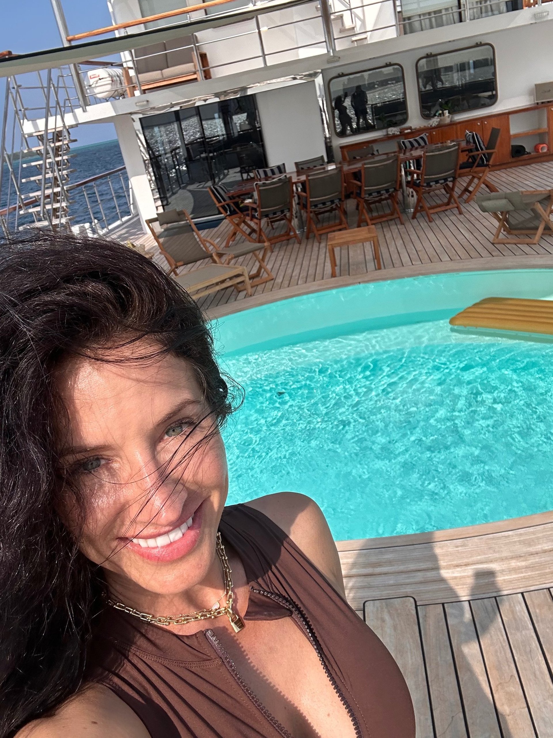 Honest beauty advice from a woman who’s been there, sharing real reviews and secrets to feeling radiant at any age. That's me in the photo by the pool, 46 years old, no facial or neck surgeries, no makeup, natural light, no FILTER but a little FILLER [wink]. Now, let's get down to business. These are 3 of the best products I have ever used and I will probably buy these until I am too old to use Amazon.